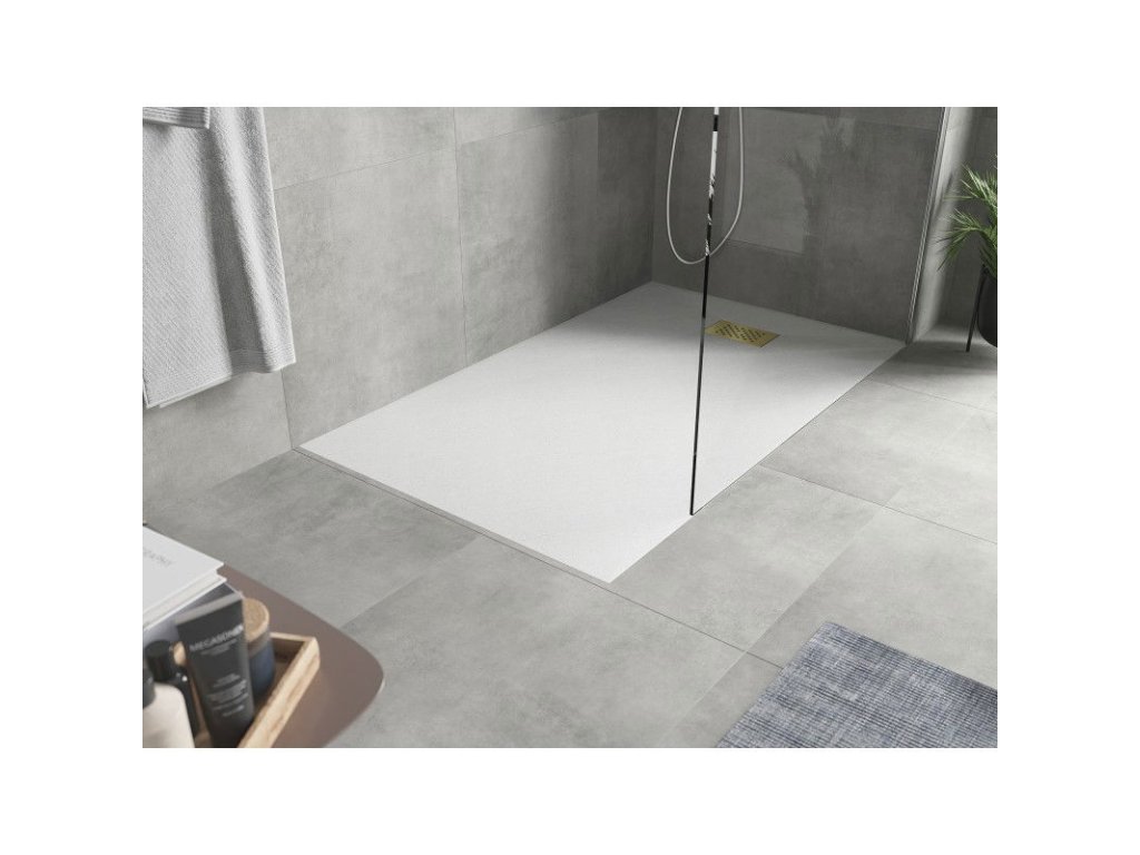 Obdĺžniková sprchová vanička Mexen Hugo s rozmermi 140 x 80 cm je ideálnym riešením pre modernú kúpeľňu. Sprchová vanička je vyrobená z odolného materiálu SMC, má kamennú štruktúru a dá sa upravovať. Mimoriadne štíhla výška 2,6 cm zabezpečuje ľahký prístup, zatiaľ čo výška odtoku 90 mm zaručuje účinné odvádzanie vody. Okrem toho zlatá mriežka dodáva eleganciu a súčasťou balenia je sifón, ktorý sa dá ľahko čistiť zhora. Je to skvelá voľba pre tých, ktorí ocenia kvalitu a štýl.Dodatočné parametre