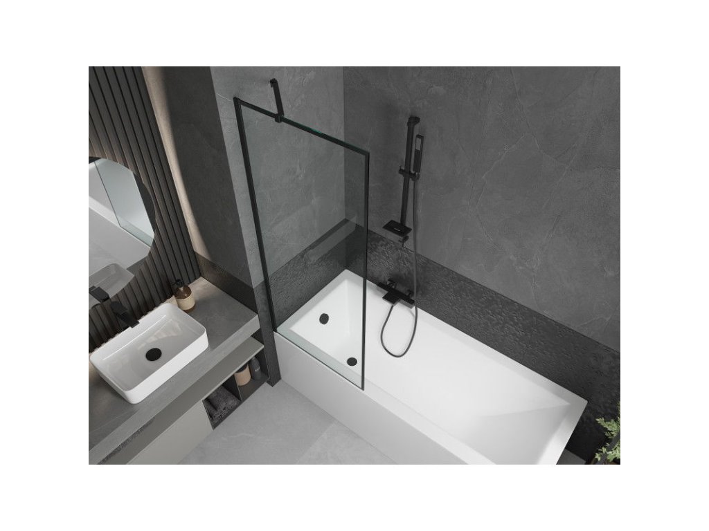 Obdĺžniková vaňa Mexen Cubik 150 x 70 cm s krytom a 1-krídlovou zástenou 70 cm, čierne prevedenie - 550315070X9507007070