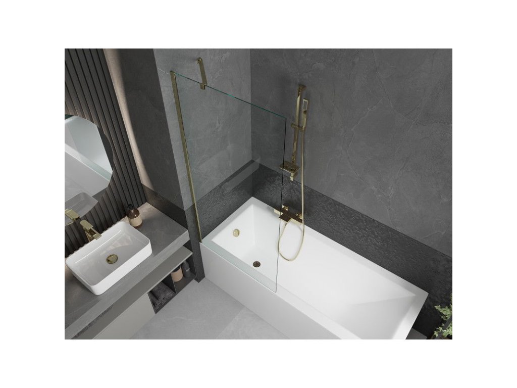 Obdĺžniková vaňa Mexen Cubik 150 x 70 cm s krytom a 1-krídlovou zástenou 80 cm, transparentná, zlatá - 550315070X9508000050