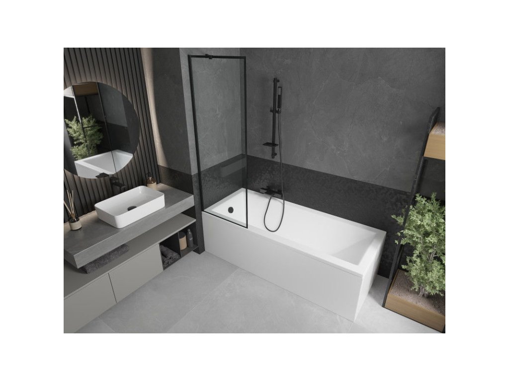 Obdĺžniková vaňa Mexen Cubik 150 x 70 cm s krytom a 60 cm 1-krídlovou sprchovou zástenou, čierny dizajn - 550315070X9506007070