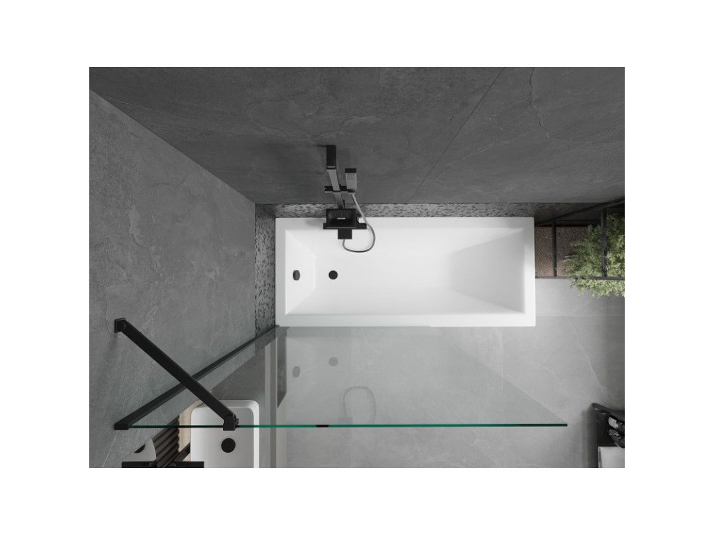 Obdĺžniková vaňa Mexen Cubik 160 x 70 cm s krytom a 1-krídlovou zástenou 100 cm, transparentná, čierna - 550316070X9510000070
