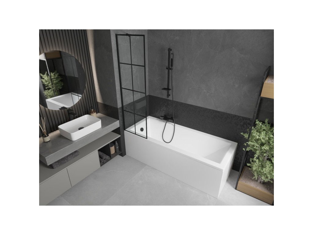 Obdĺžniková vaňa Mexen Cubik 170 x 70 cm s krytom a 1-krídlovou zástenou 50 cm, čierne prevedenie - 550317070X9505007077