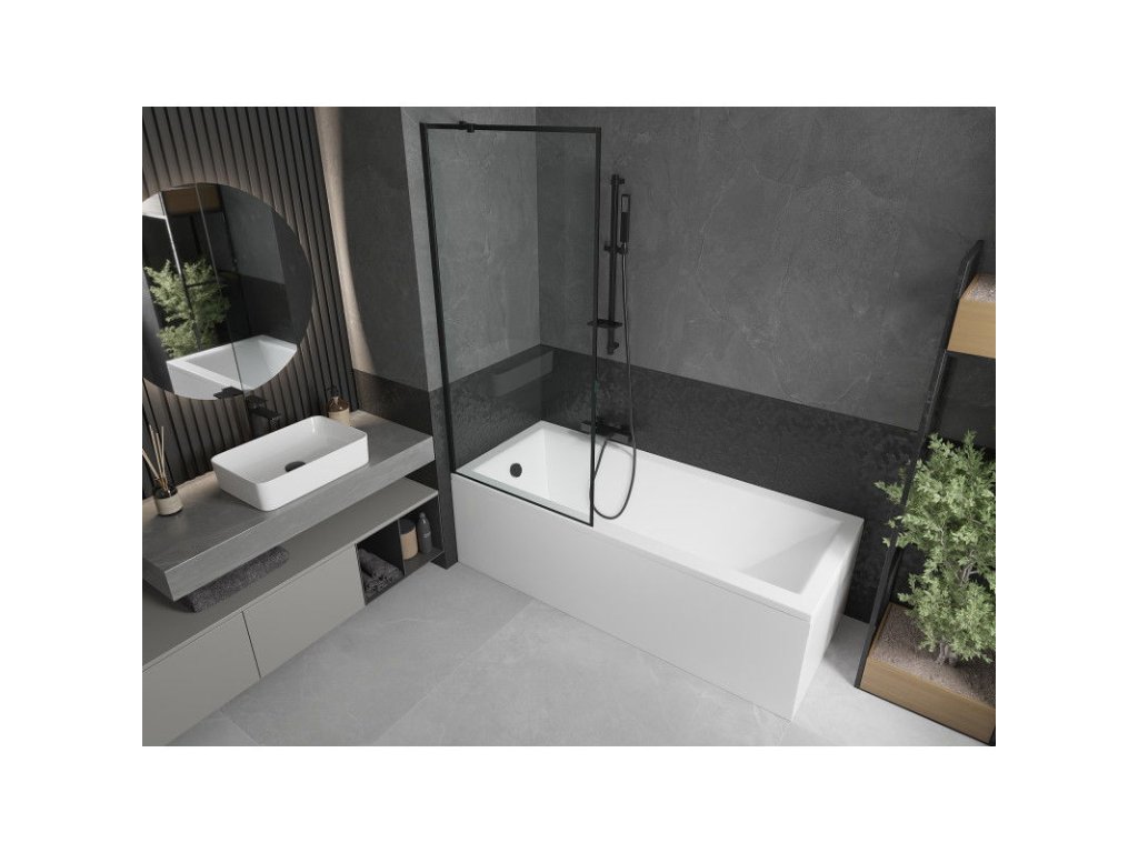 Obdĺžniková vaňa Mexen Cubik 170 x 70 cm s krytom a 1-krídlovou zástenou 80 cm, čierne prevedenie - 550317070X9508007070