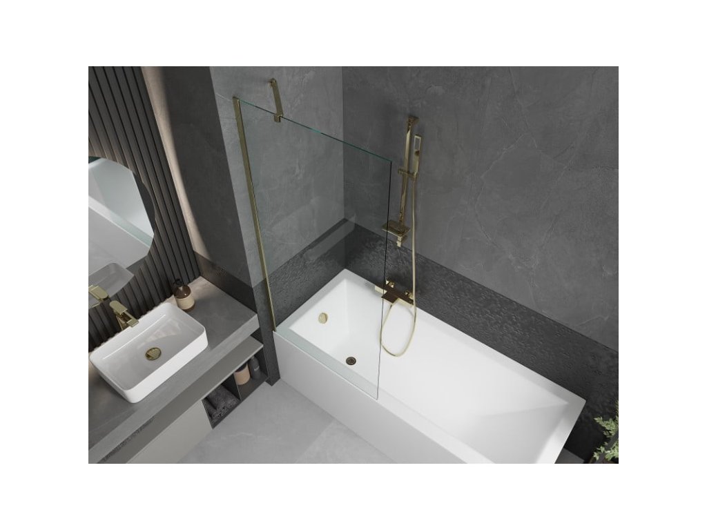Obdĺžniková vaňa Mexen Cubik 170 x 70 cm s krytom a 1-krídlovou zástenou 80 cm, transparentná, zlatá - 550317070X9508000050