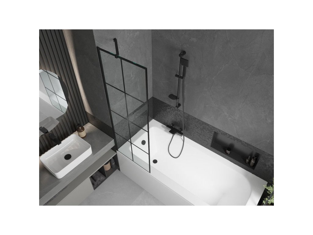 Obdĺžniková vaňa Mexen Vega 150 x 70 cm s krytom a 1-krídlovou zástenou 60 cm, čierne prevedenie - 550115070X9506007077