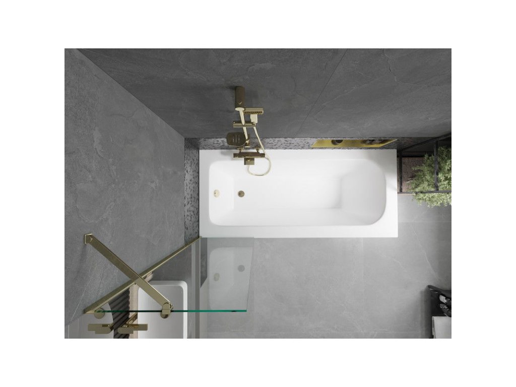 Obdĺžniková vaňa Mexen Vega 150 x 70 cm s krytom a 50 cm 1-krídlovou sprchovou zástenou, transparentná, zlatá - 550115070X9505000050