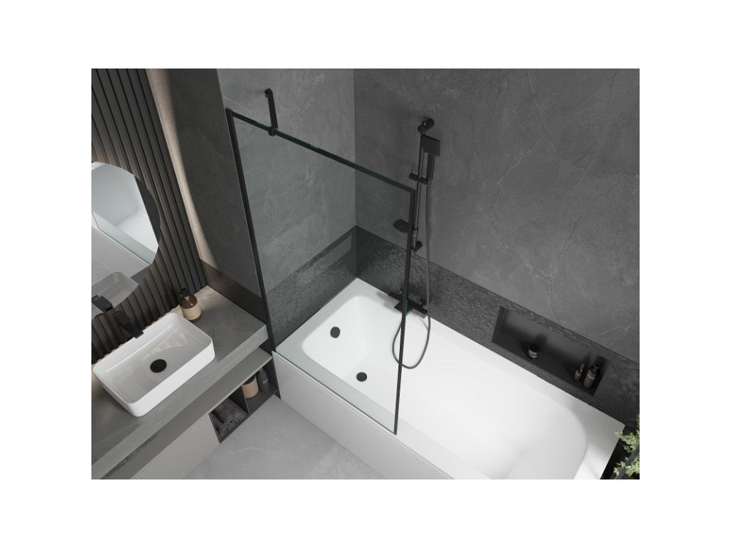 Obdĺžniková vaňa Mexen Vega 150 x 70 cm s krytom a 90 cm 1-krídlovou sprchovou zástenou, čierny dizajn - 550115070X9509007070