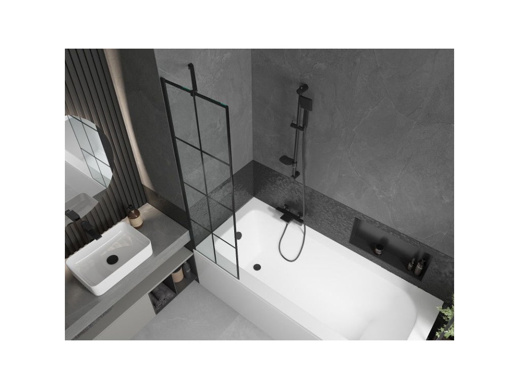 Obdĺžniková vaňa Mexen Vega 160 x 70 cm s krytom a 1-krídlovou zástenou 50 cm, čierne prevedenie - 550116070X9505007077