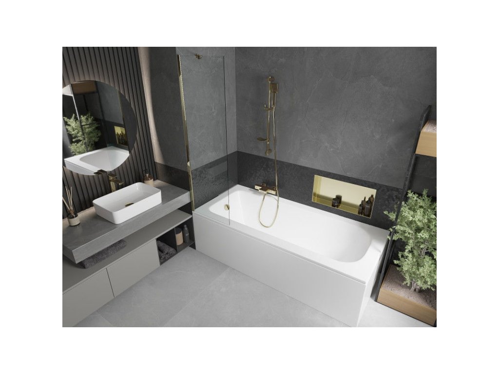 Obdĺžniková vaňa Mexen Vega 160 x 70 cm s krytom a 50 cm 1-krídlovou sprchovou zástenou, transparentná, zlatá - 550116070X9505000050