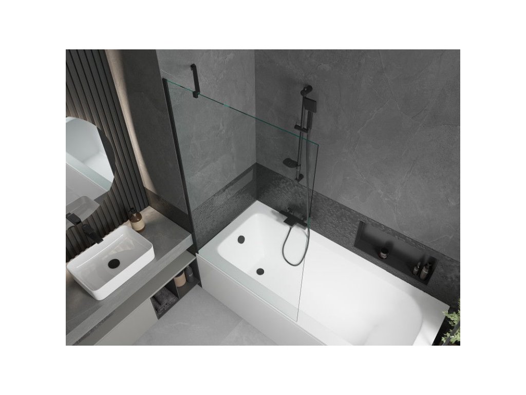 Obdĺžniková vaňa Mexen Vega 170 x 70 cm s krytom a 1-krídlovou sprchovou zástenou 100 cm, transparentná, čierna - 550117070X9510000070