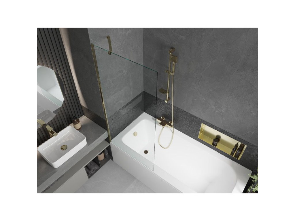 Obdĺžniková vaňa Mexen Vega 170 x 70 cm s krytom a 1-krídlovou sprchovou zástenou 80 cm, transparentná, zlatá - 550117070X9508000050