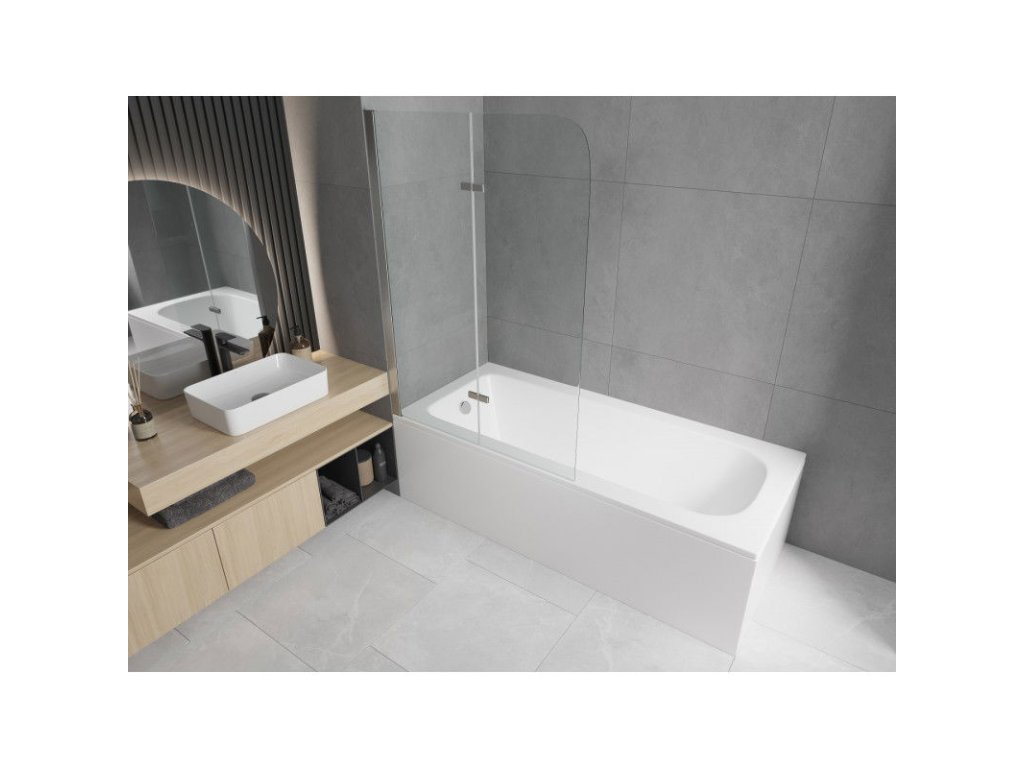 Obdĺžniková vaňa Mexen Vega 170 x 70 cm s krytom a 2-krídlovou sprchovou zástenou 100 cm, priehľadná, chróm - 550117070X9010020100