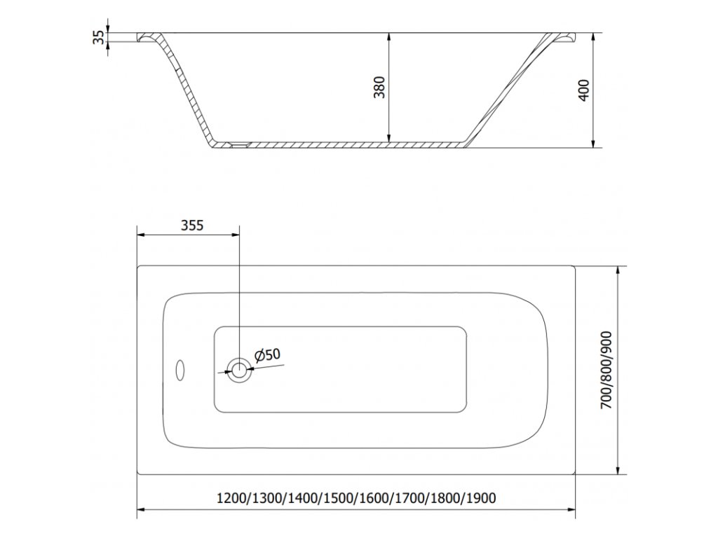 \nNastaviteľné nohy sú súčasťou balenia, vaňa nemá sifón