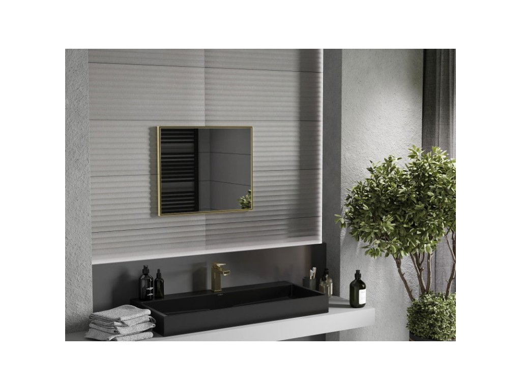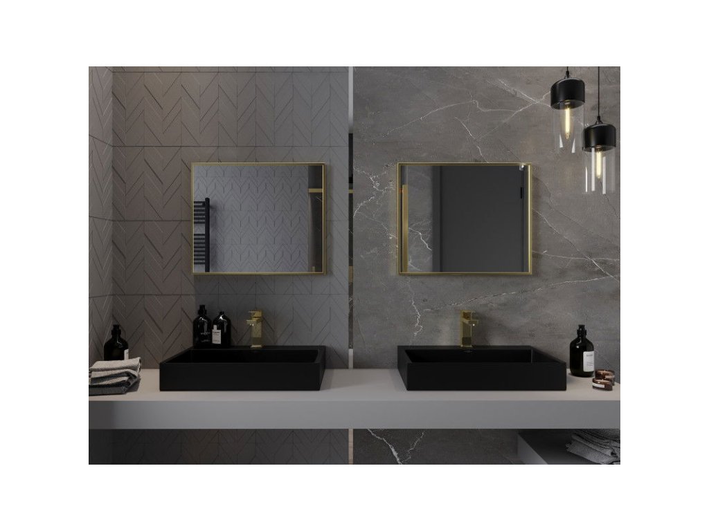 Obdĺžnikové kúpeľňové zrkadlo Mexen Loft 60 x 50 cm, zlatý rám - 9852-060-050-000-50