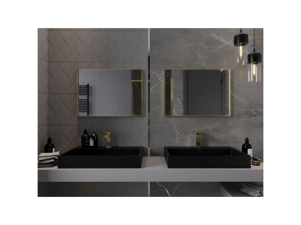 Obdĺžnikové kúpeľňové zrkadlo Mexen Loft 70 x 50 cm, zlatý rám - 9852-070-050-000-50