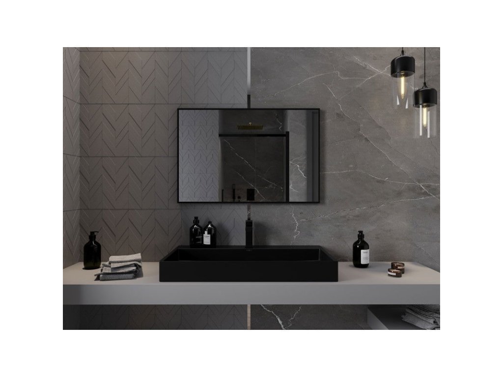 Obdĺžnikové kúpeľňové zrkadlo Mexen Loft 90 x 60 cm, čierny rám - 9852-090-060-000-70