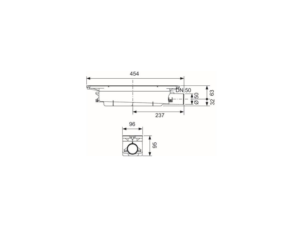 TECHNICKÉ PARAMETRE:\nRozmer: DN 50\nDĺžka: 454 mm\nŠírka: 96 mm\nMin. montážna výška: 95 mm\nVýška vodného stĺpca: 50 mm\nKapacita odtoku: 0,6 l/s\n\nMateriál: plast\n\n- sifón pre sprchový profil Concept 300, ktorý sa inštaluje do stierky\n- pre bočné pripojenie k odpadovému potrubiu\n- tesniaca manžeta Seal System\n- odnímateľná zápachová uzávera\n- integrovaná kotviaca plastová mriežka\n- prefabrikovaná zvuková izolácia\n- ochranný kryt\n- nastaviteľné/pohyblivé tesnenie pre pripojenie k sprchovému profilu a pre vyrovnanie rozmerových tolerancií