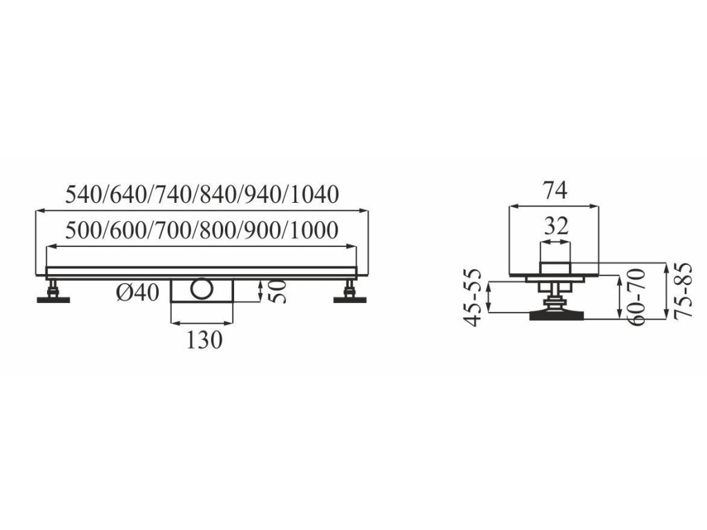 Odtokový žľab z vysoko kvalitnej nerezovej ocele AISI 304 je jedným z našich najlepších sprchových žľabov. Vďaka špeciálnemu výrobnému procesu sa ľahko udržuje v čistote. Žľab je k dispozícii v niekoľkých veľkostiach, aby dokonale ladil so sprchovacím kútom alebo sprchovými dverami, ktoré nájdete v našej ponuke.Dodatočné parametre