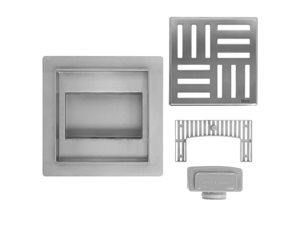 Odtokový žľab REA CROSS 150x150 Nickel Brush