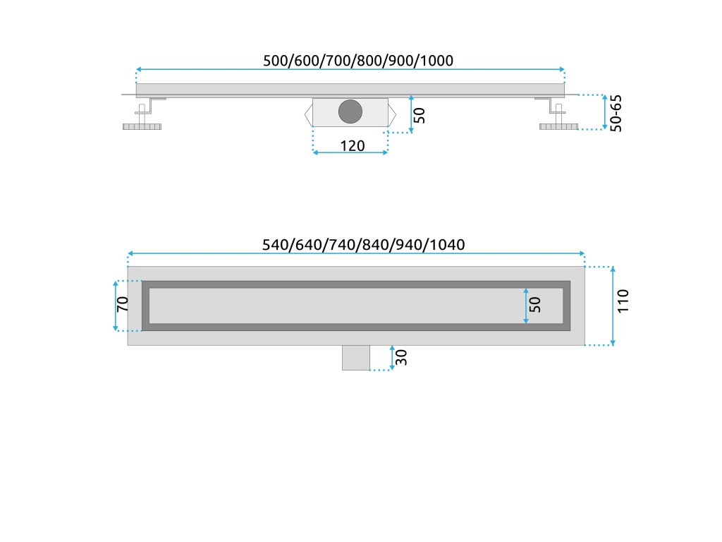 Odtokový žľab z vysoko kvalitnej nerezovej ocele AISI 304 je jedným z našich najlepších sprchových žľabov. Vďaka špeciálnemu výrobnému procesu sa ľahko udržuje v čistote. Žľab je k dispozícii v niekoľkých veľkostiach, aby dokonale ladil so sprchovacím kútom alebo sprchovými dverami, ktoré nájdete v našej ponuke.Dodatočné parametre