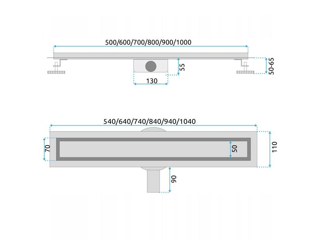 Odtokový žľab z vysoko kvalitnej nerezovej ocele AISI 304 je jedným z našich najlepších sprchových žľabov. Vďaka špeciálnemu výrobnému procesu sa ľahko udržuje v čistote. Žľab je k dispozícii v niekoľkých veľkostiach, aby dokonale ladil so sprchovacím kútom alebo sprchovými dverami, ktoré nájdete v našej ponuke.Dodatočné parametre