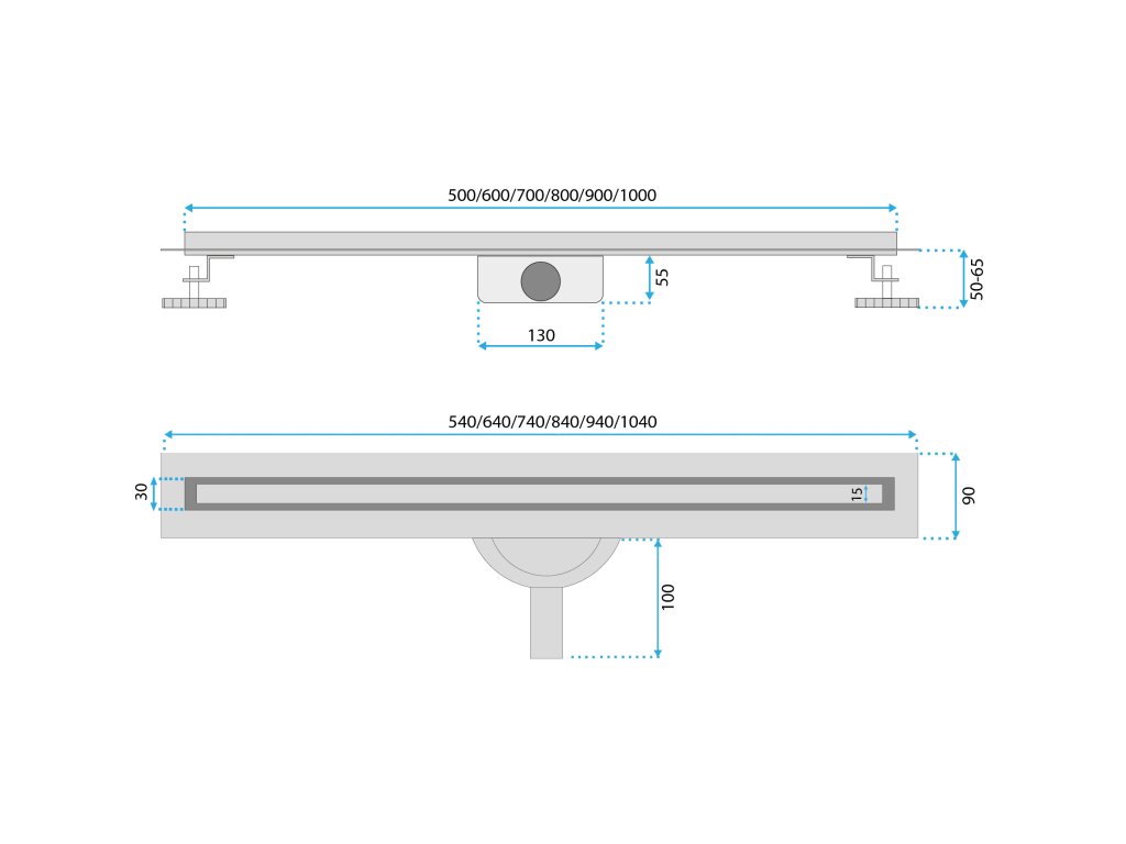 Odtokový žľab z vysoko kvalitnej nerezovej ocele AISI 304 je jedným z našich najlepších sprchových žľabov. Vďaka špeciálnemu výrobnému procesu sa ľahko udržuje v čistote. Žľab je k dispozícii v niekoľkých veľkostiach, aby dokonale ladil so sprchovacím kútom alebo sprchovými dverami, ktoré nájdete v našej ponuke.Dodatočné parametre