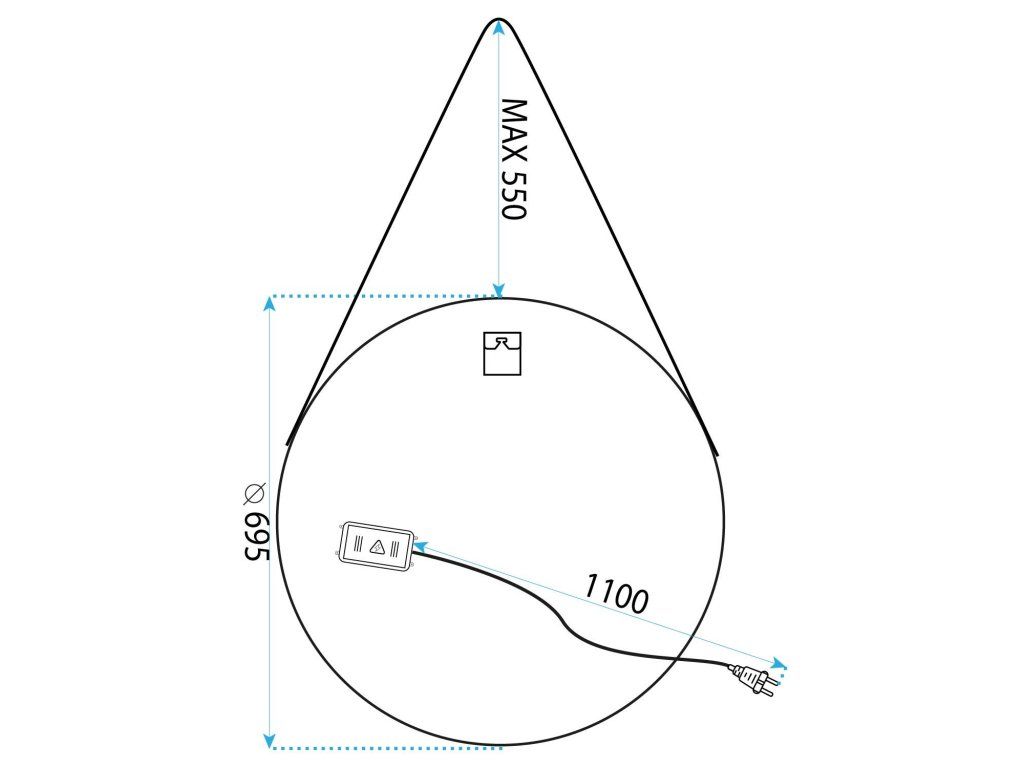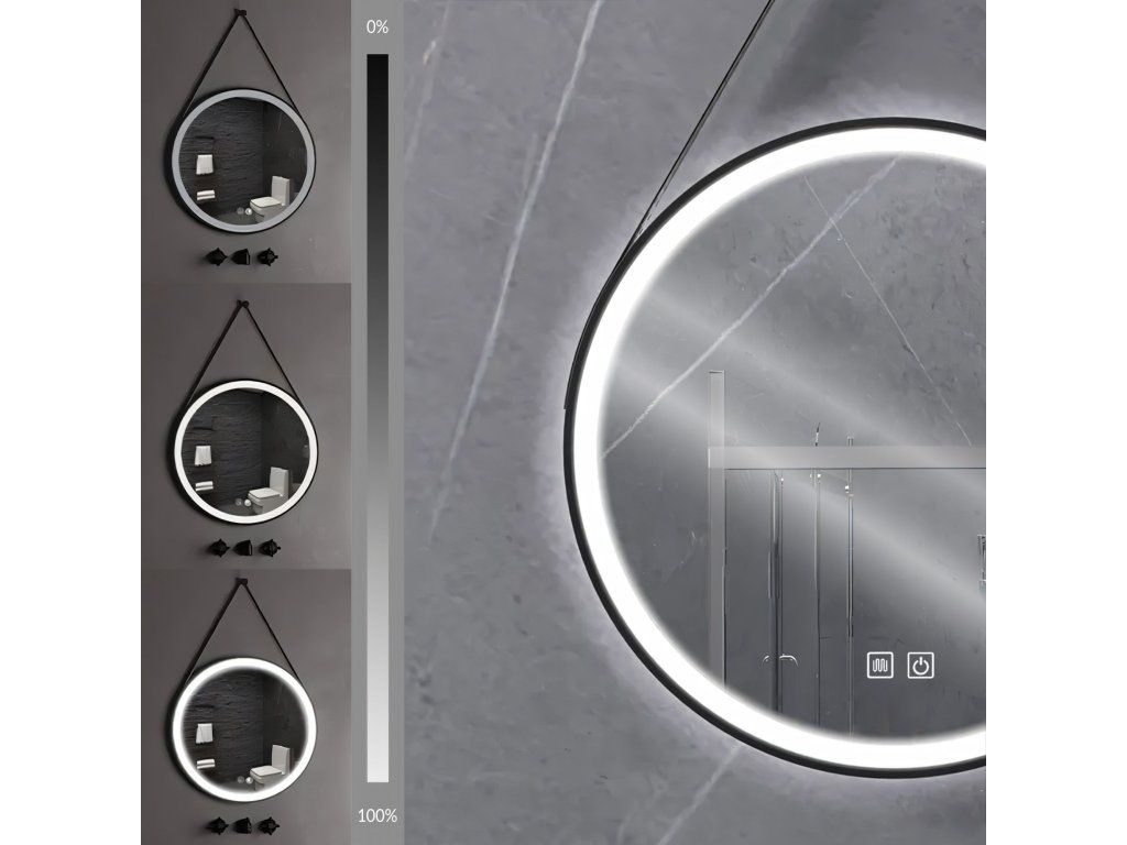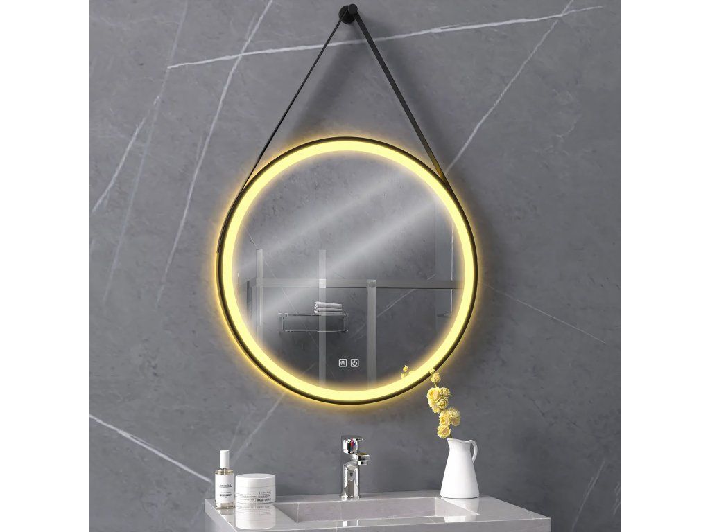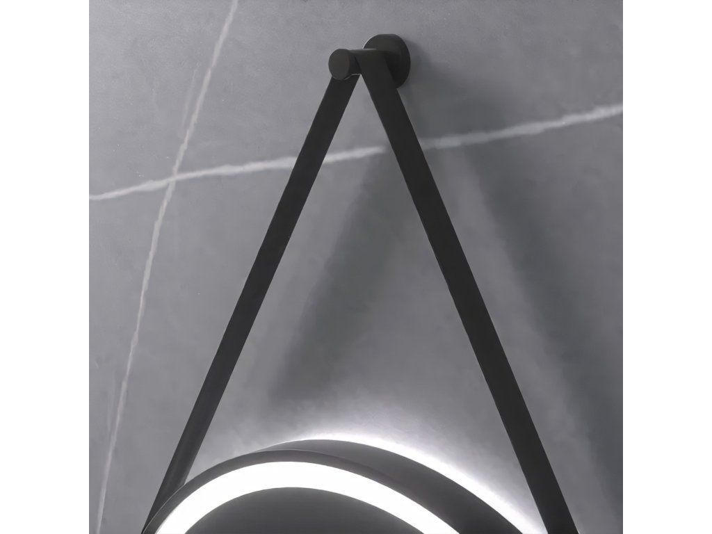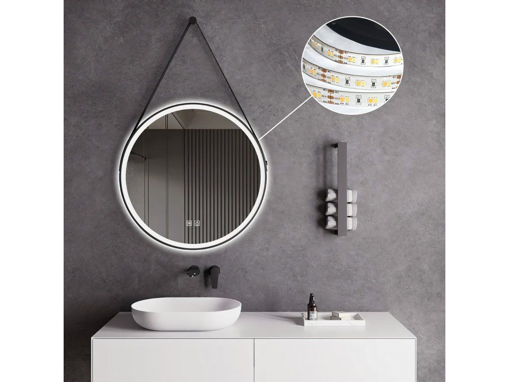 Okrúhle LED zrkadlo zavesené na remienku 70 cm 104