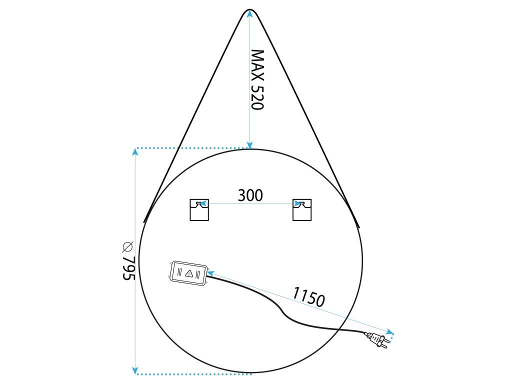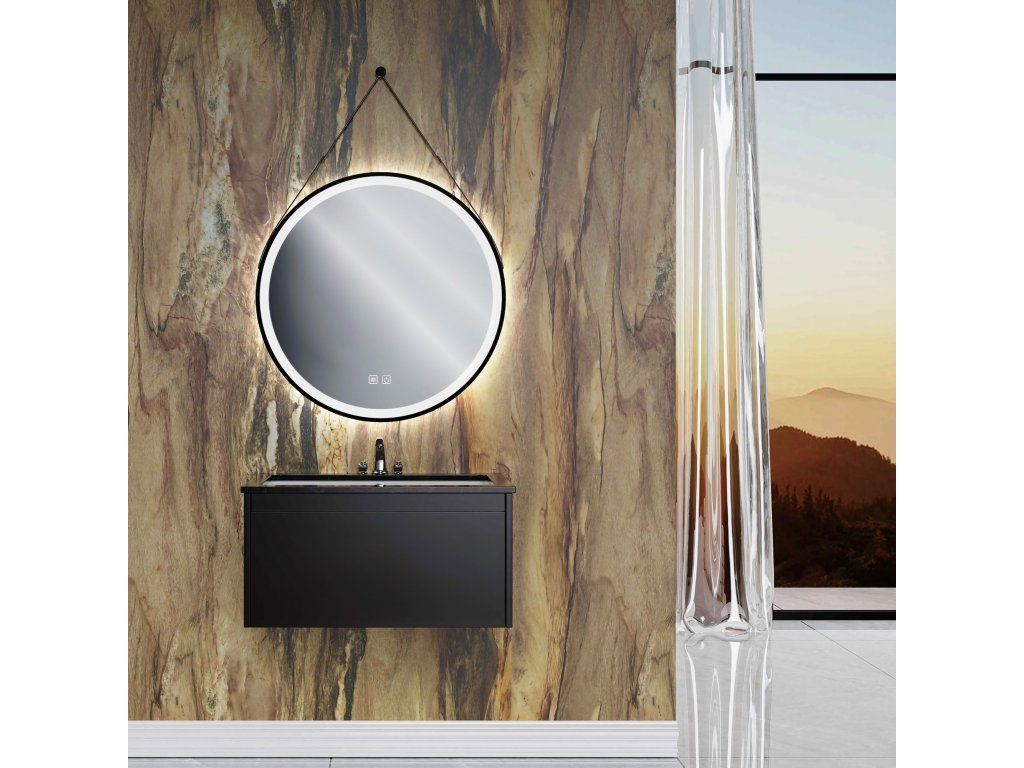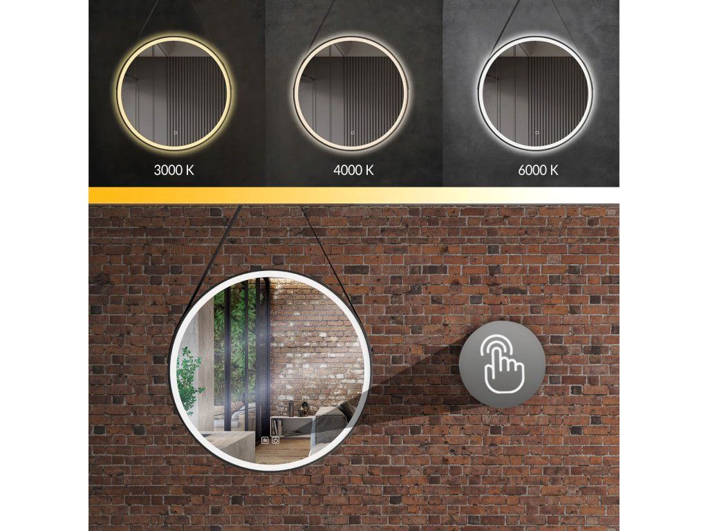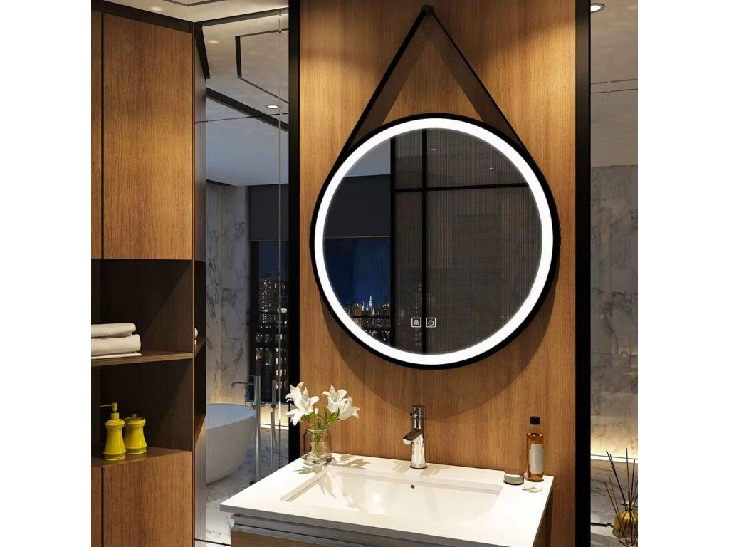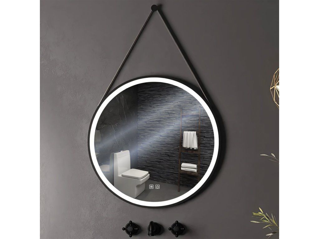 Okrúhle LED zrkadlo zavesené na remienku 80cm 105