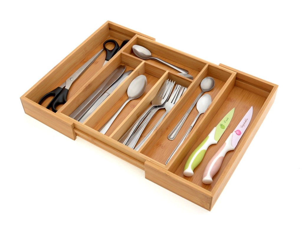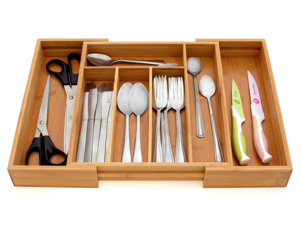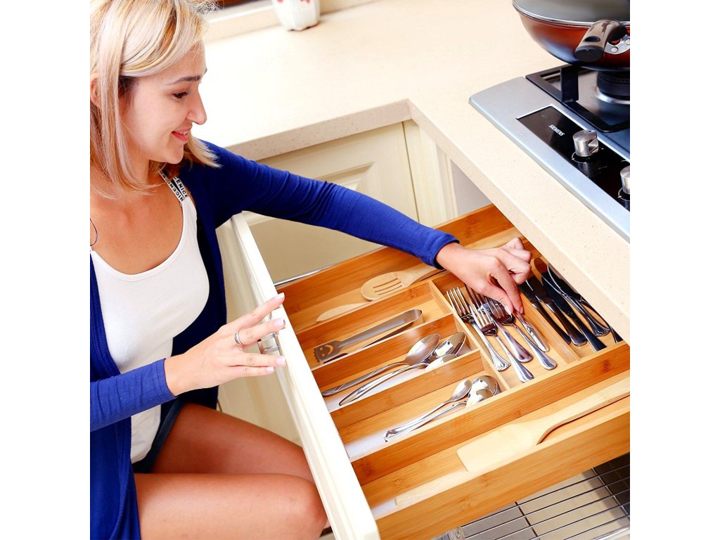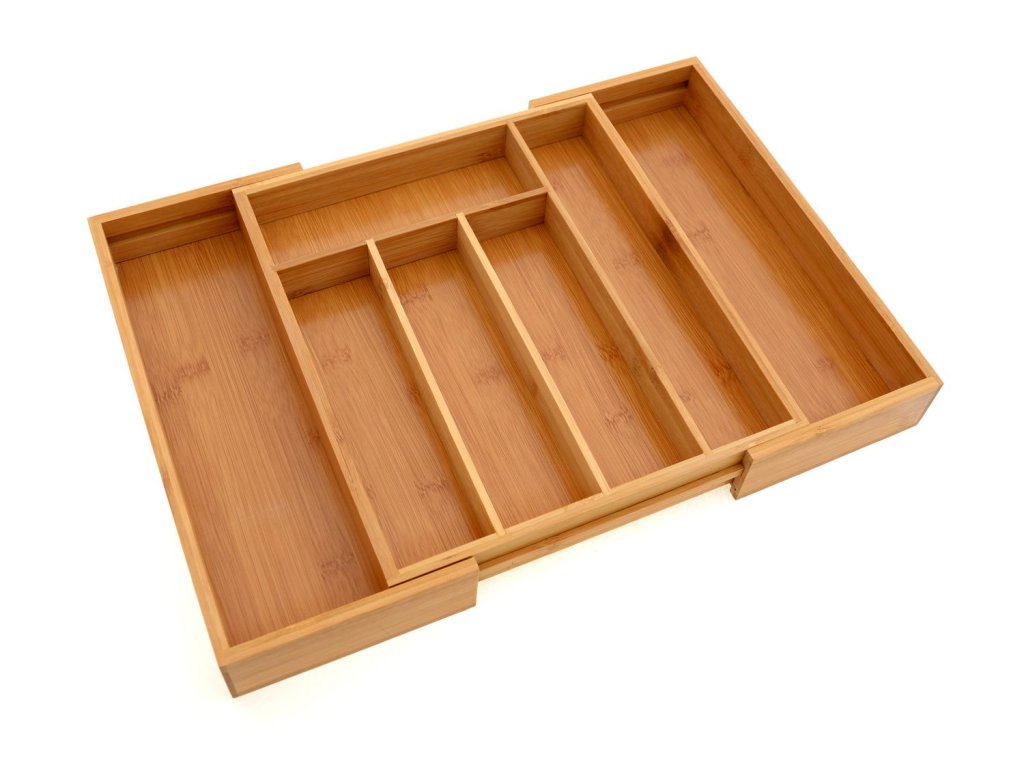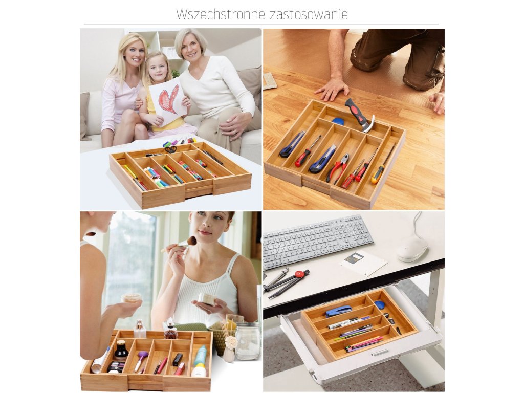 Predstavujeme vám výrobok, ktorý vyrieši problém s neporiadkom v zásuvkách. Náš organizér vám pomôže udržať v čistote zásuvky v kuchyni, kancelárii, pracovni, detskej izbe, dielni, obývačke. V zloženom stave má organizér šírku 28 cm a 5 priehradiek rôznych veľkostí, pričom jeho najväčšou výhodou je, že sa dá rozšíriť až na 45 cm a získať tak 2 veľké priehradky. Vďaka nastaviteľnej šírke môžete náš organizér prispôsobiť akejkoľvek veľkosti zásuvky.Dodatočné parametre