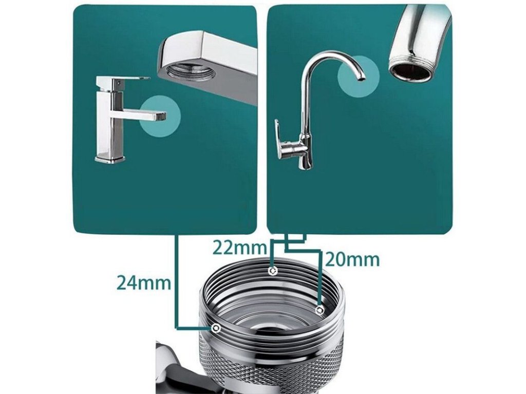 Predstavujeme vám otočný nadstavec batérie s nastaviteľným prietokom vody, funkciou otáčania o 360 stupňov v 3 rovinách a viacerých uhloch. Je to dokonalý spôsob, ako zlepšiť funkčnosť vašej kuchyne alebo kúpeľne. Je vyrobená z najkvalitnejších materiálov, je odolná a odolná voči opotrebovaniu a korózii pre dlhodobý výkon. Otočný nadstavec sa ľahko inštaluje a je vhodný pre väčšinu štandardných vodovodných batérií. S nadstavcom sa dodáva súprava tesnení a inštalačná súprava.Dodatočné parametre