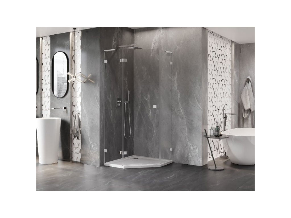 Päťuholníkový sprchový kút Mexen Lunar L, naklápací doľava, 80 x 80 cm, priehľadný, chróm - 831L-080L-080P-01-00-L