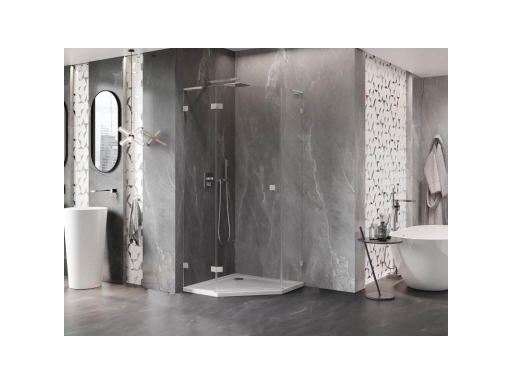 Päťuholníkový sprchový kút Mexen Lunar L, naklápací doľava, 80 x 80 cm, transparentný, brúsený nikel - 831L-080L-080P-97-00-L