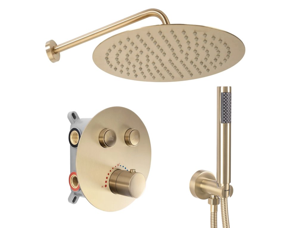 Podomietková sprchová sada LUNGO brúsené zlato + termostat + BOX
