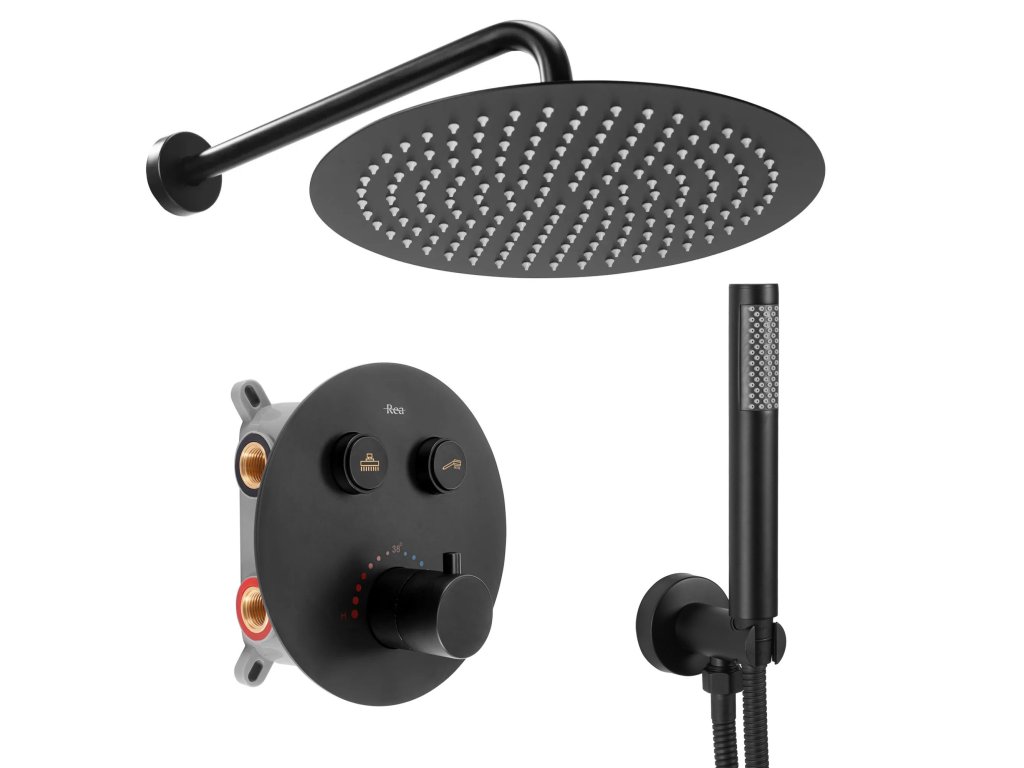 Podomietková sprchová sada REA Lungo- matná čierna + BOX, TERMOSTAT