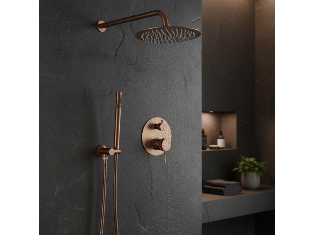 Hľadáte set, ktorý dodá vašej kúpeľni nový rozmer? Objavte eleganciu a moderný štýl, ktorý prináša podomietkový sprchový set Rea Lungo Grip s boxom vo vyhotovení Kartáčovaná meď. Spája originálne spracovanie, ryhované prvky a kvalitné materiály so zaručenou trvácnosťou.Kartáčovaná meď – štýlové a trendové vyhotovenie.Mosadzná konštrukcia – odolnosť a dlhá životnosť.PVD technológia – povrch s vysokou ochranou a jednoduchou údržbou.Podomietkový montážny box – estetické riešenie bez viditeľných prípojok.Keramická kartuša – plynulá regulácia vody.Dažďová hlavica + ručná sprcha – maximálne pohodlie pri sprchovaní.Moderný dizajn Rea Lungo – vhodný do loftových, industriálnych a modern classic kúpeľní.Podomietkový sprchový set Rea Lungo Grip Kartáčovaná meď je výbornou voľbou pre tých, ktorí preferujú čistý minimalizmus a spoľahlivosť.Dodatočné parametre