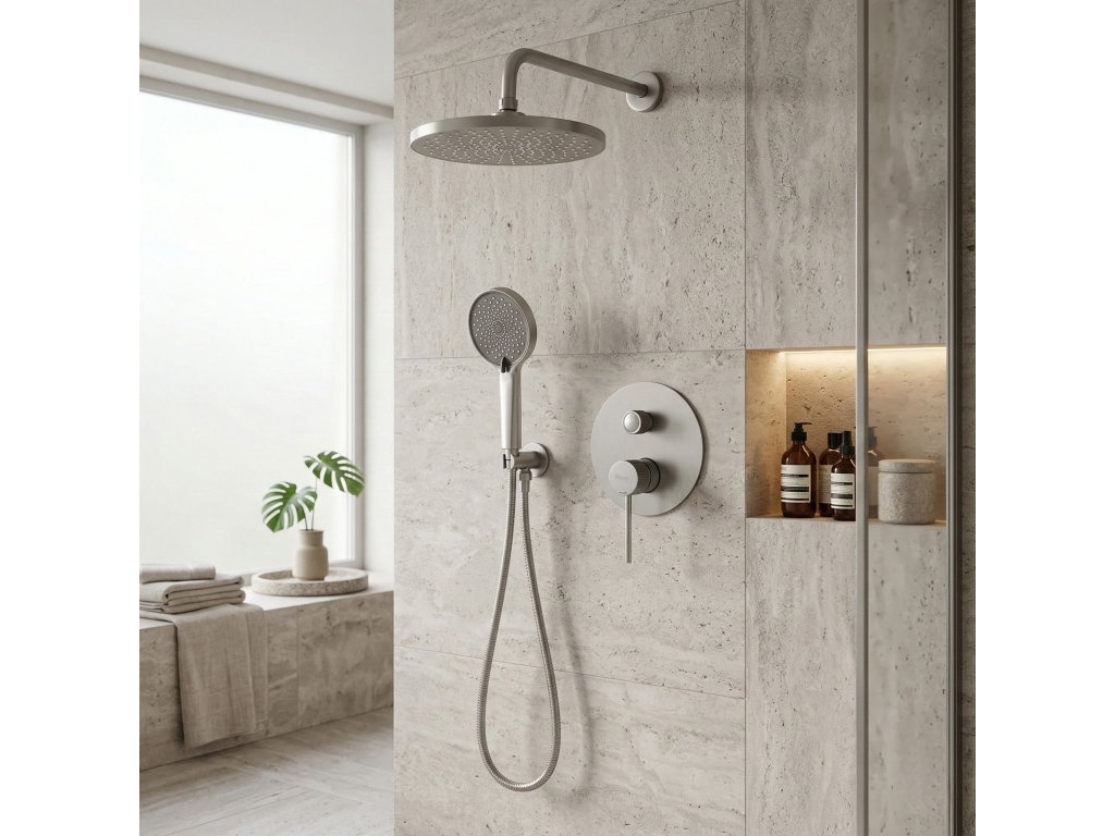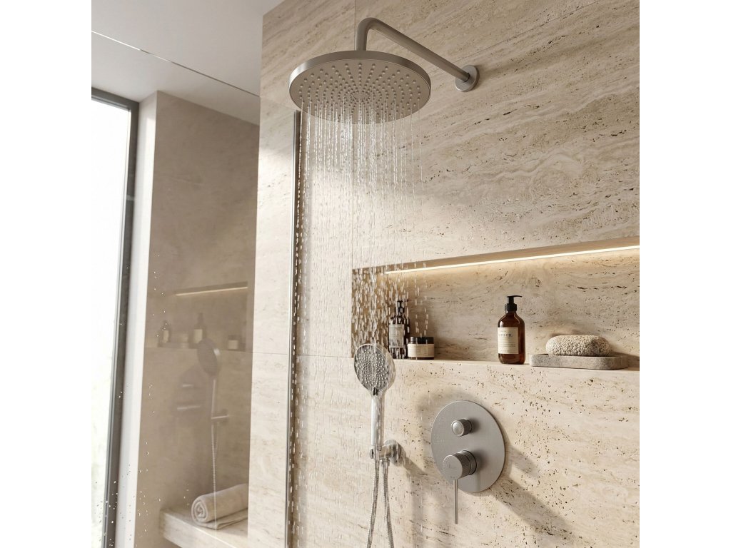 Podomítkový sprchový set Rea Lungo Stripe v provedení kartáčovaného niklu je moderní řešení vytvořené pro uživatele, kteří očekávají spolehlivost a elegantní vzhled. Ušlechtilý odstín niklu kombinovaný se subtilním kartáčováním a výrazným ryhováním detailů dodává koupelně prestižní a luxusní charakter.Dekorativní ryhování Stripe – charakteristické drážky na úchopových rukovětích batérie jsou stylovým detailem, který přitahuje pozornost a zaručuje jistý úchop při ovládání vody mokrými rukama.Moderní podomítkový systém BOX – estetické umístění umožňuje skrytí připojení ve stěně. Inovativní kazeta (Box) usnadňuje instalaci a zajišťuje pohodlný bezpečný přístup k servisnímu údržbě v budoucnu bez nutnosti rozbíjení obkladaček.Kartáčovaný niklový povrch – odolné matné provedení efektivně skrývá otisky prstů a dodává interiéru eleganci a styl. Perfektně se hodí k dalším prvkům ze série Lungo.Dešťová sprcha s širokým proudem – plochá kulatá hlavice sprchy na stěnovém rameni poskytuje rovnoměrný, relaxační tok vody. Sada doplňuje praktická ruční sprcha s flexibilní hadicí.Odolné materiály – set je vyroben z vysoce kvalitního mosazi a odolného plastu, což zaručuje plnou odolnost proti vlhkosti, korozi a bezproblémové používání po mnoho let.Systém Anti-Calc – silikonové trysky na dešťové sprše a ruční sprše zabraňují usazování vodního kamene z tvrdé vody, což značně usnadňuje pravidelnou údržbu a prodlužuje životnost sprchového systému.Výběrem kompletního sprchového setu Lungo Stripe se systémem Box investujete do inteligentního řešení, které spojuje vysokou estetiku, bezpečnost a pohodlí. Minimalistický silueta a sofistikované rýhované detaily dokonale doplní každou stylovou koupelnovou zónu.Dodatočné parametre