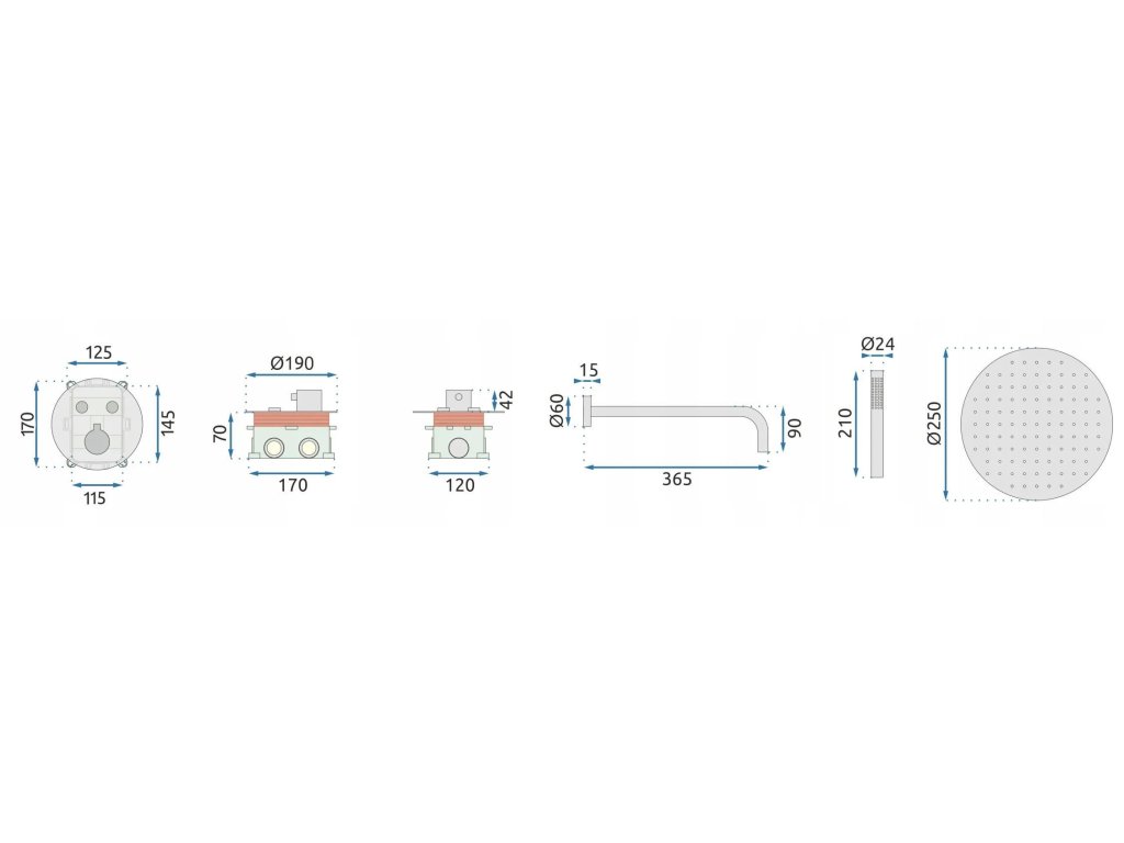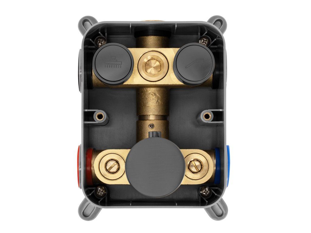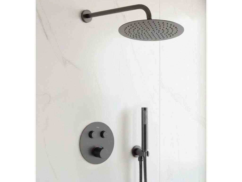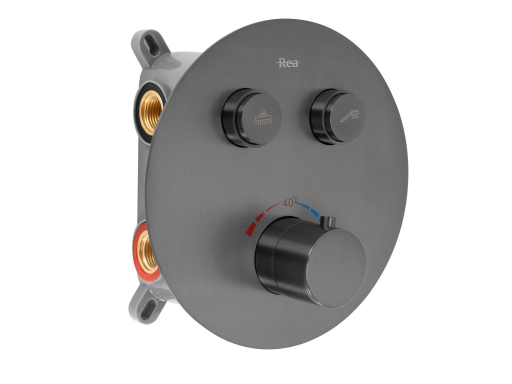 Podomietkový sprchový set Lungo s termostatom je pre tých, ktorí si cenia moderný dizajn a najvyšší komfort používania. V balení je hlavová dažďová sprcha, praktická ručná sprcha a podomietková termostatická batéria so selektormi funkcií – pre pohodlné ovládanie a presnú reguláciu vody v každej situácii. Termostat udržuje stálu teplotu, chráni pred náhlymi zmenami a zvyšuje bezpečnosť pre všetkých členov domácnosti, takže sprchovanie je vždy komfortné a relaxačné. Set je vybavený systémom Box na rýchlu montáž a jednoduchý prístup k vnútorným častiam pri údržbe. Jednoduchý ovládací panel zvýrazňuje moderný charakter a hodí sa do minimalistických, elegantných kúpeľní.Dodatočné parametre