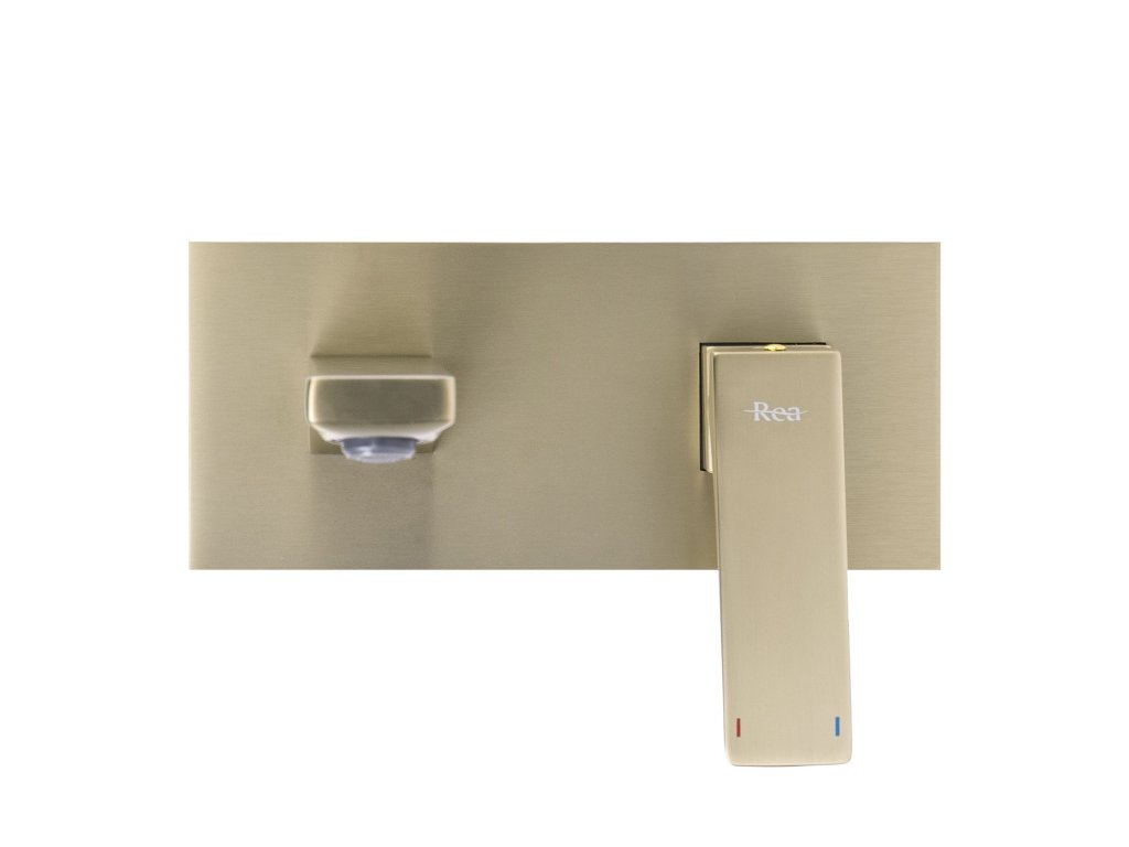 Podomietková umývadlová batéria v prevedení brúsené zlato je určená pre tých, ktorí si cenia moderný štýl a nadčasovú eleganciu. Jej minimalistický dizajn, založený na jednoduchých líniách a ušľachtilom vyhotovení, sa skvele hodí do glamour aj moderných interiérov. Pevné spracovanie zaručuje dlhú životnosť a pohodlné používanie. Keramická kartuša umožňuje plynulú reguláciu teploty a prúdu vody a podomietková konštrukcia dodáva batérii mimoriadne estetický vzhľad a šetrí miesto pri umývadle. Táto podomietková batéria je výbornou voľbou pre každú elegantnú kúpeľňu. Model je určený na montáž na stenu.Dodatočné parametre