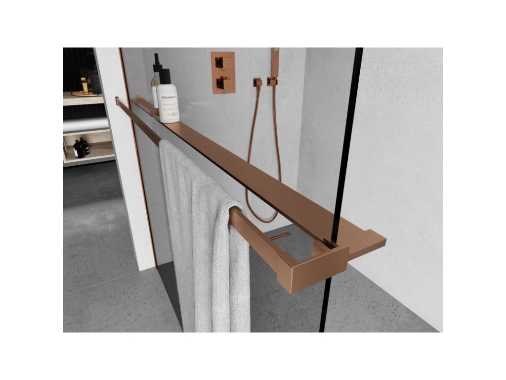 Polička Mexen na stenu sprchy s držiakom na uteráky, brúsená meď - 800-02-65