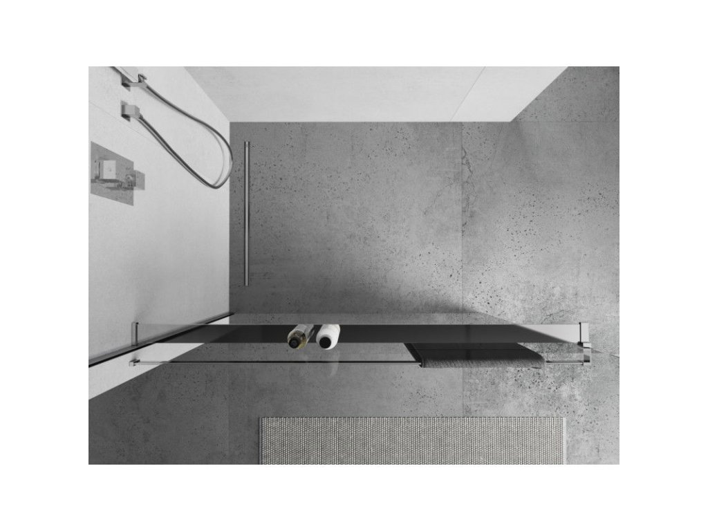 Polička Mexen na stenu sprchy s držiakom na uteráky, pištoľový kov - 800-02-95