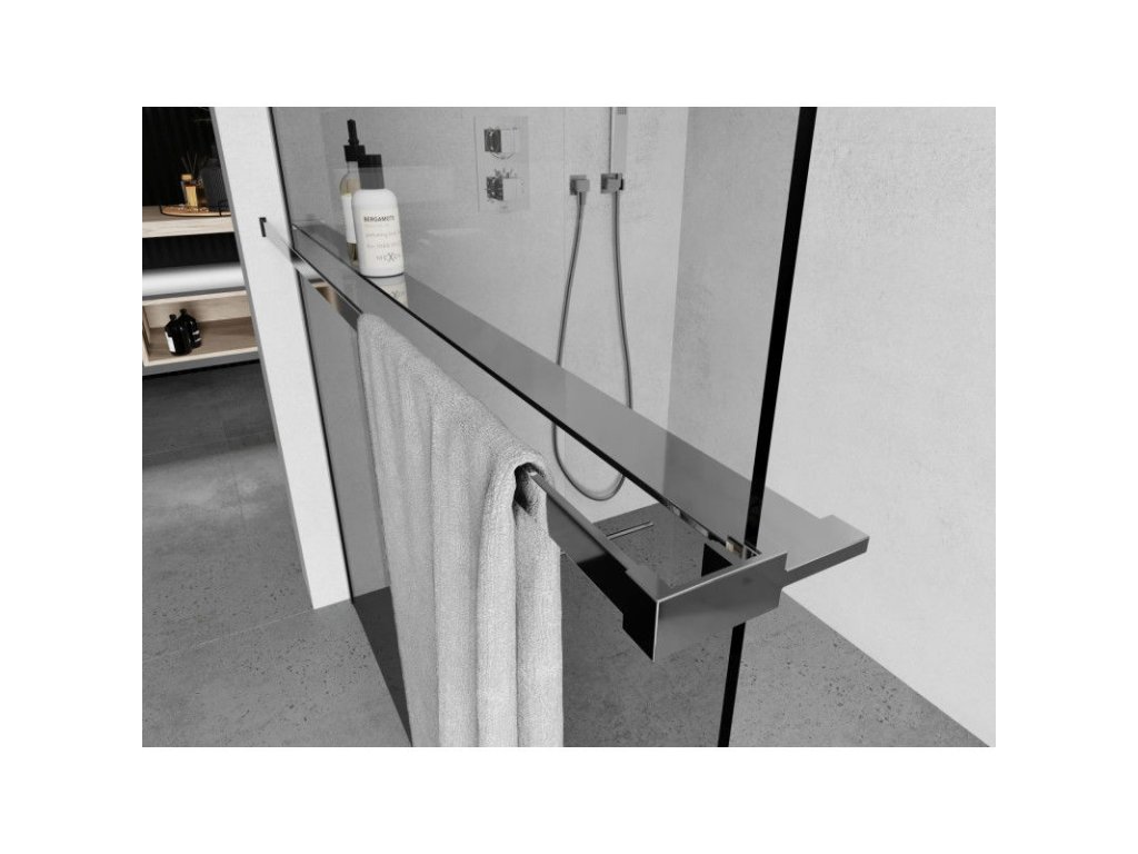 Polička Mexen na stenu sprchy s držiakom na uteráky, chróm - 800-02-01
