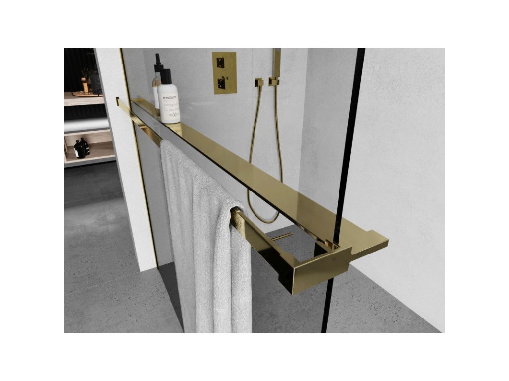 Polička Mexen na stenu sprchy s držiakom na uteráky, zlatá - 800-02-50