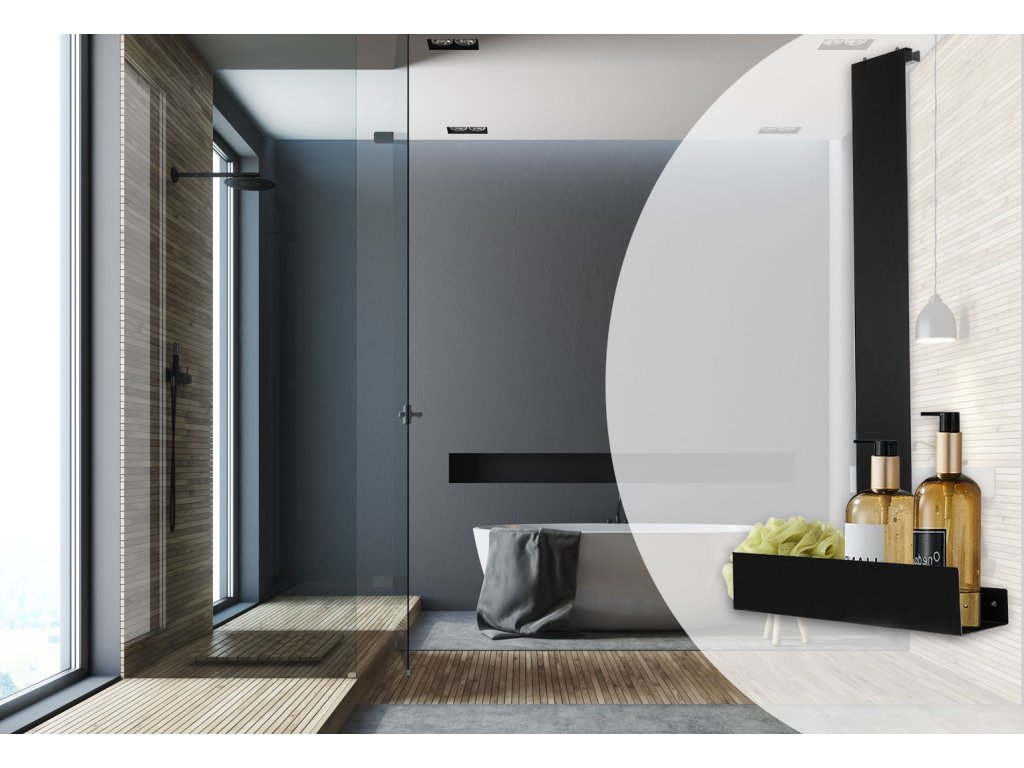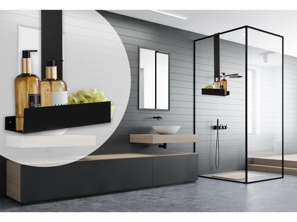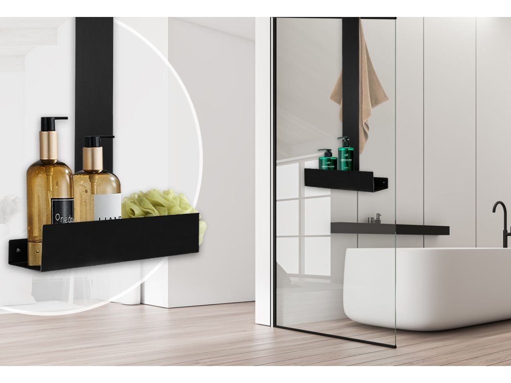 Praktická a pevná kovová kúpeľňová polička zavesená na kabíne. Ideálne poslúži na uloženie čistiacich prostriedkov, kozmetiky a iných drobných predmetov. Umožní udržať v kúpeľni poriadok a čistotu a jej moderný dizajn bude ďalším dekoratívnym prvkom kúpeľne.Dodatočné parametre