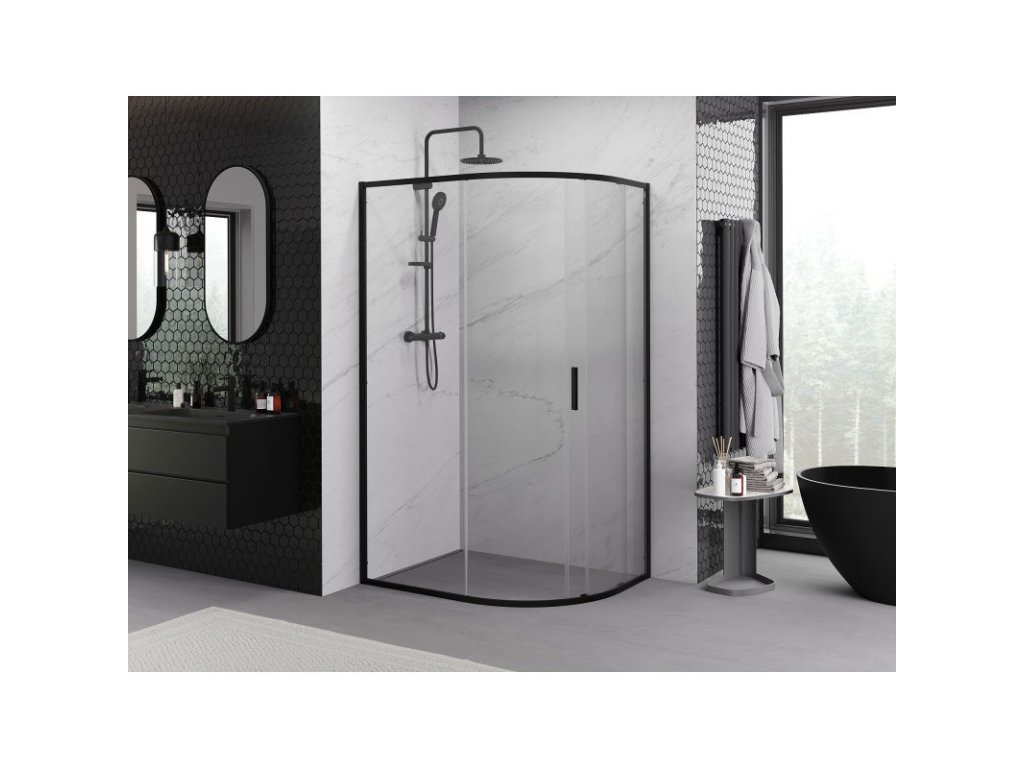 Polkruhový asymetrický posuvný sprchový kút Mexen Exo 90 x 80 cm, priehľadný, čierny - 8131-090-080-70-00