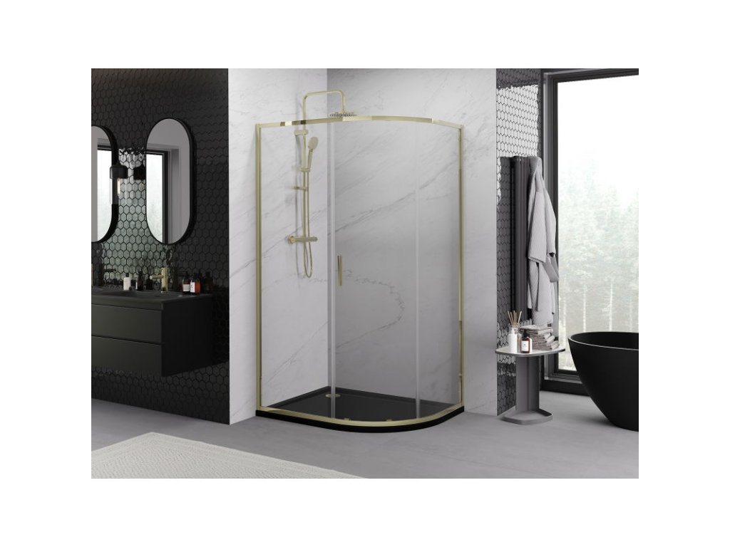 Polkruhový posuvný sprchový kút Mexen Exo 100 x 80 cm, transparentný, zlatý - 8131-100-080-50-00