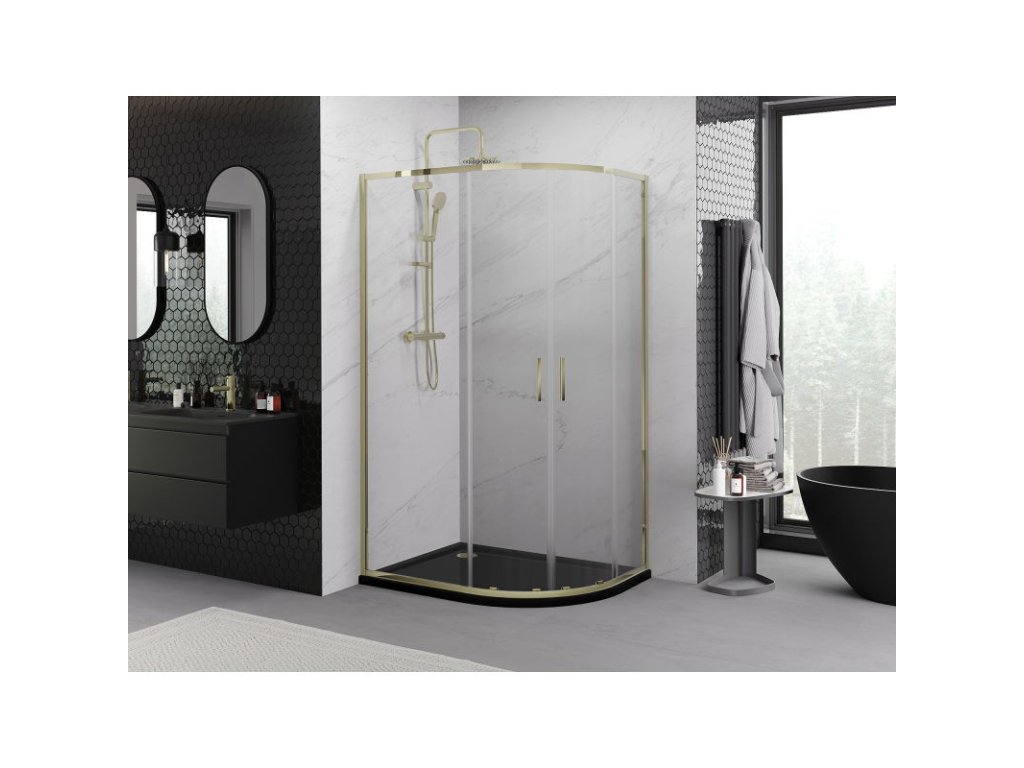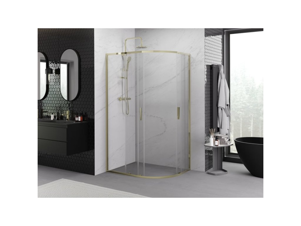 Polkruhový posuvný sprchový kút Mexen Exo 100 x 80 cm, transparentný, zlatý - 8132-100-080-50-00