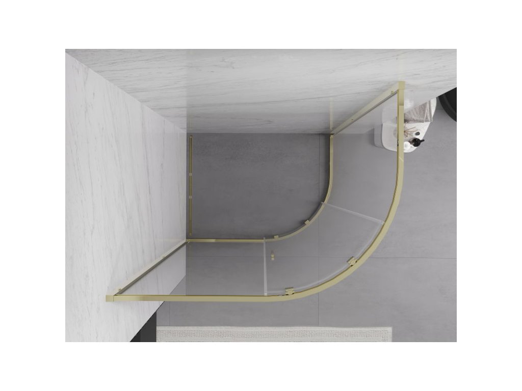 Polkruhový posuvný sprchový kút Mexen Exo 90 x 80 cm, transparentný, zlatý - 8131-090-080-50-00
