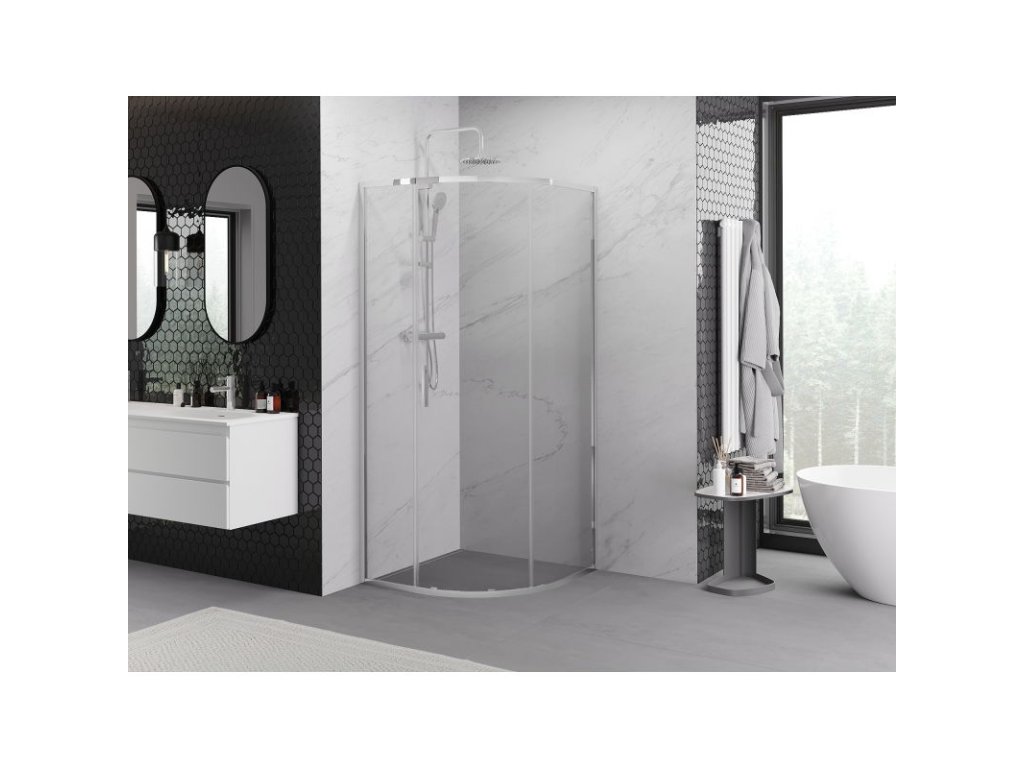 Polkruhový posuvný sprchový kút Mexen Exo 90 x 90 cm, priehľadný, chróm - 8131-090-090-01-00