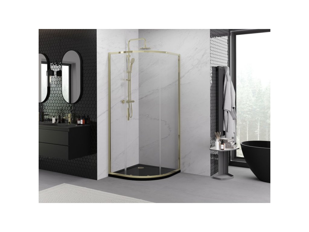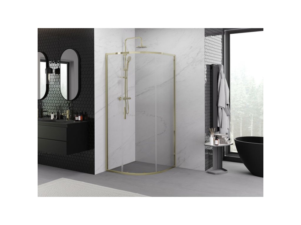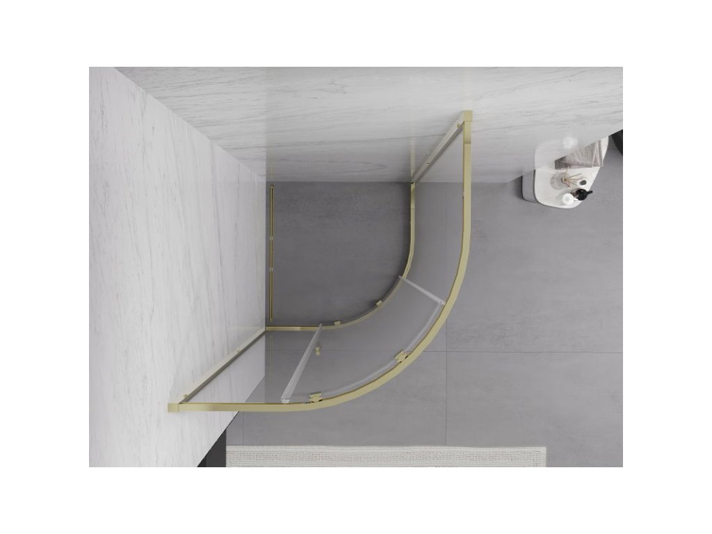Polkruhový posuvný sprchový kút Mexen Exo 90 x 90 cm, transparentný, zlatý - 8131-090-090-50-00