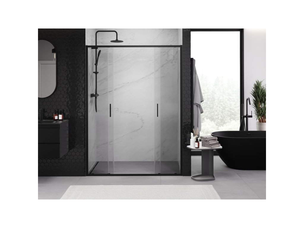 Posuvné dvojité sprchové dvere Mexen Exo 150 cm, transparentné, čierne - 8152-150-000-70-00